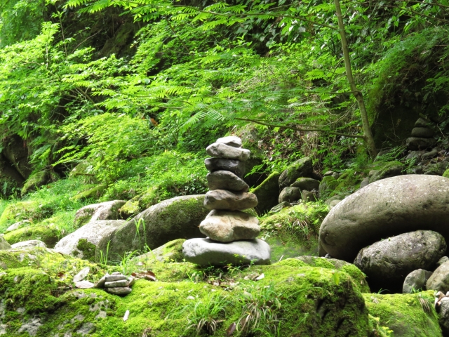 石を積む際は3・5・7など奇数になるように積み、人が積んだ石から拝借するのではなく必ず落ちている石を積むようにするべしとのことです。