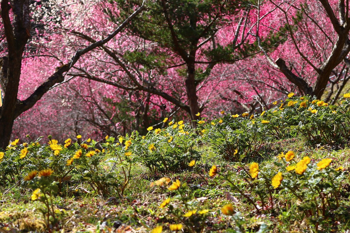 福寿草の里は、早春の訪れを告げる福寿草と紅梅の2つの花が楽しめます。 開園期間中は地元農産物や福寿草の鉢植えなどの販売が行われます。 毎年、福寿草と紅梅の両方が見頃を迎える3月第1土曜日に「福寿草まつり」を開催します。