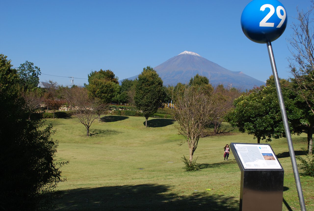 富士西公園は、富士山を北に臨むゆるやかな斜面地と高速道路の高架下を利用した、2つの部分からなる公園です。