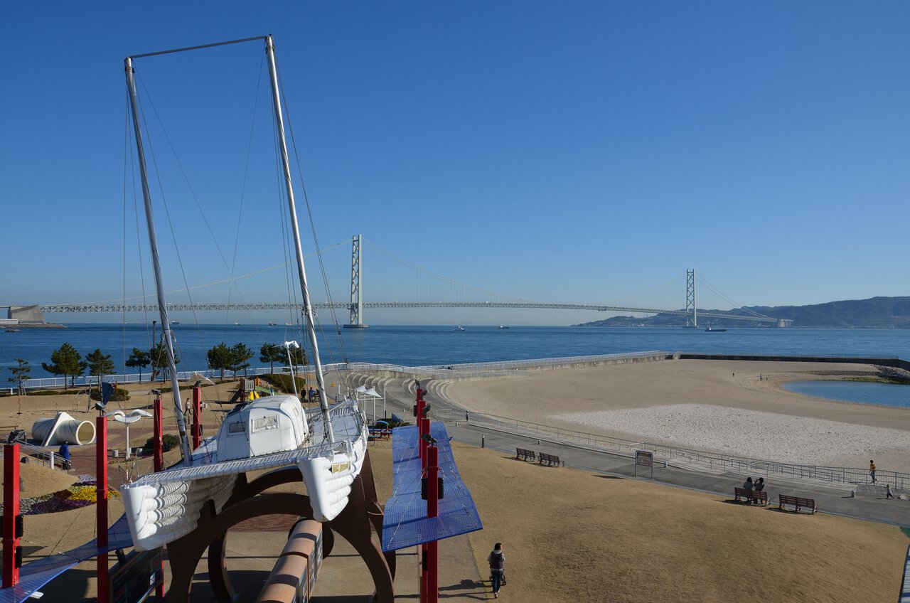 雄大な明石海峡大橋が目の前にあるシーサイドの公園です。