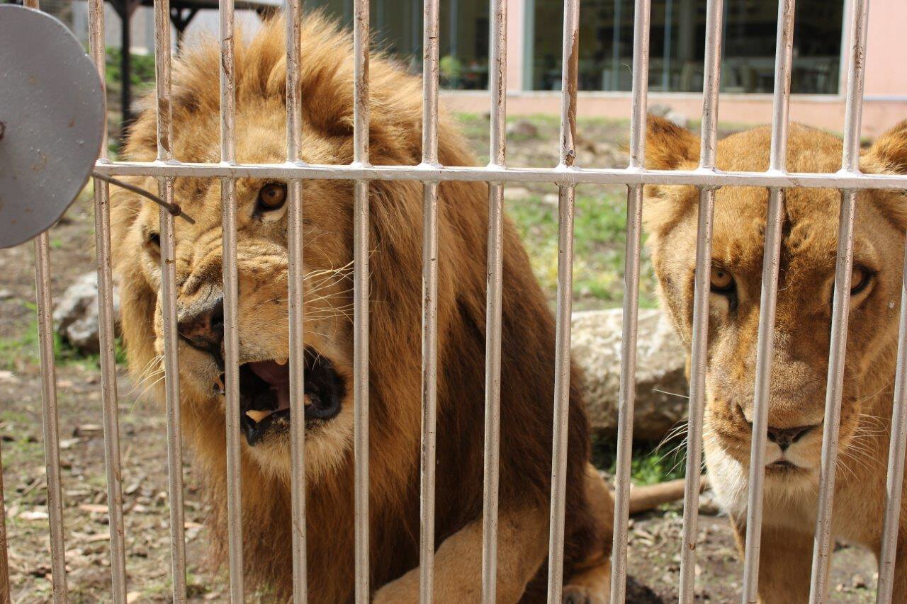 「アニマルゾーン」には、ホワイトタイガー・ライオン・チーターなどの猛獣や、キリン・ゾウ・サイ・シマウマなどの大型草食動物、カピバラ・アルマジロなどの小動物など60種以上の動物が展示されています。