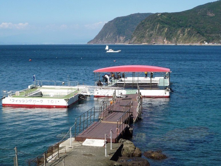 天然の入り江に浮かぶ海の釣り堀で、お子様や初心者でも気軽に魚釣りを楽しめます。