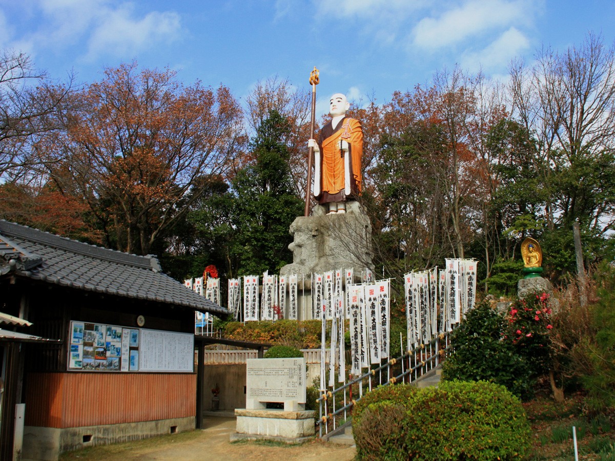 新居の大弘法(あらいのおおこうぼう)は、新居町の退養寺境内にある高さ約10メートルの弘法大師像です。昭和6年(1931年)に、名鉄瀬戸線の前身である瀬戸電気鉄道が沿線の新たな観光名所として建立しました。この像は、尾張三大弘法の一つに数えられ、地元では「新居の大弘法さん」として親しまれています 。