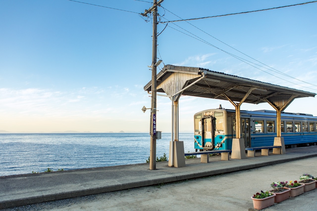 ホームから伊予灘を見渡すことができる絶景ポイントで、かつてはホームの下にすぐ波が打ち寄せる日本一海に近い駅でした。