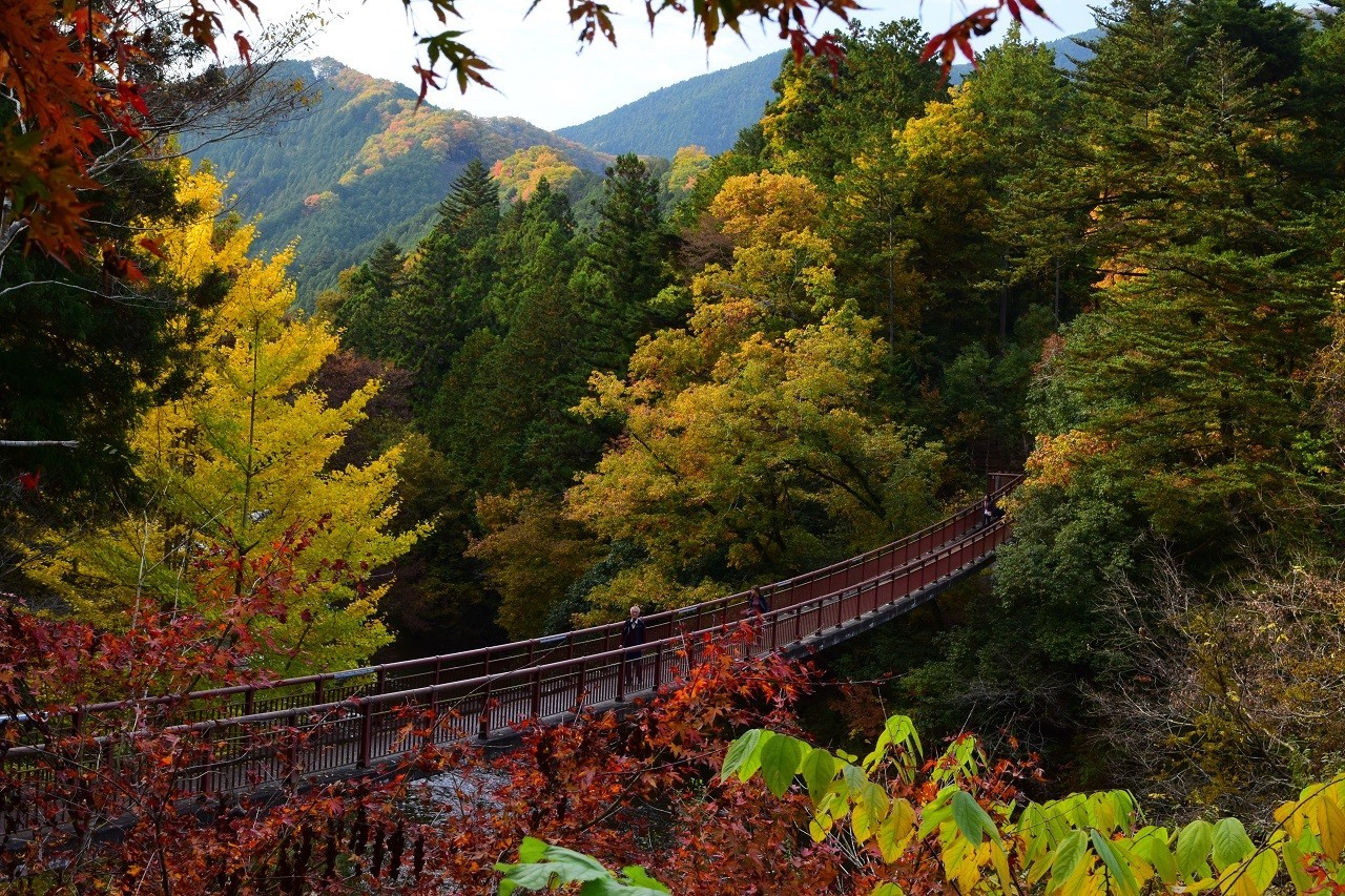 橋の上から清流秋川と、四季折々に表情を変える山々を眺められる上、橋自体もフォトジェニックのため人気のスポットです。