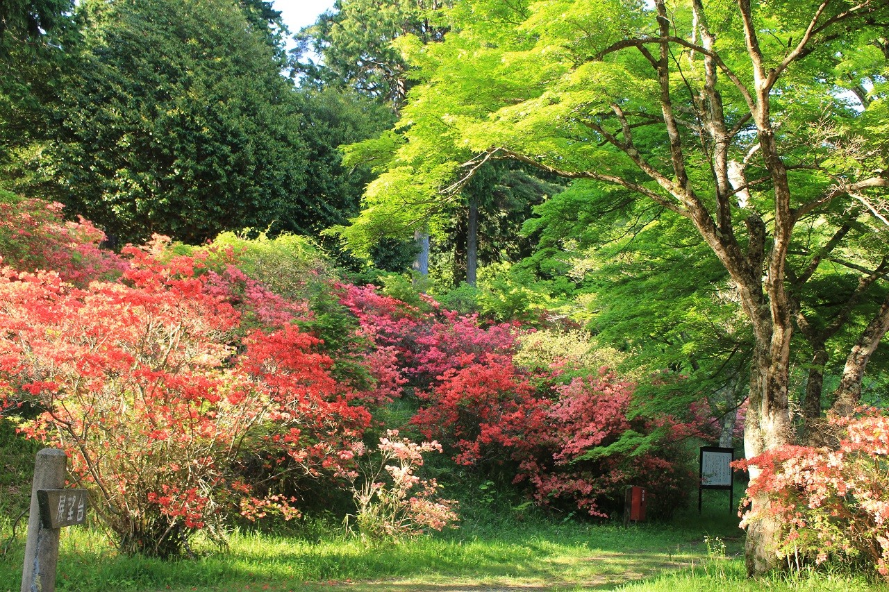 鳥見山の中腹にある自然公園。 神武天皇東遷伝承地の顕彰碑や歌碑が数多くあり、春には数千本のつつじの名所として知られ、紅葉のシーズンもまた格別。 展望台からは、眼下に大和盆地、宇陀の山並みを一望できます。