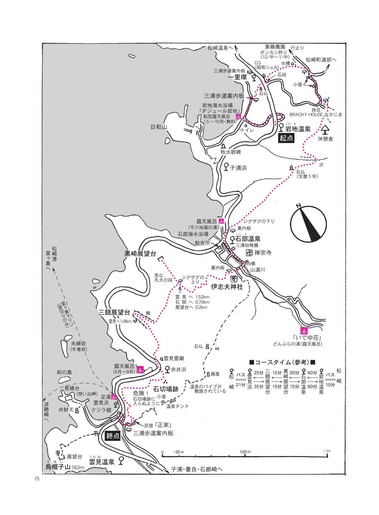 このバス道路ができる前に地元の人が使っていた生活道路が、岩地・石部・雲見をつなぐ「三浦歩道」のもとになっています。