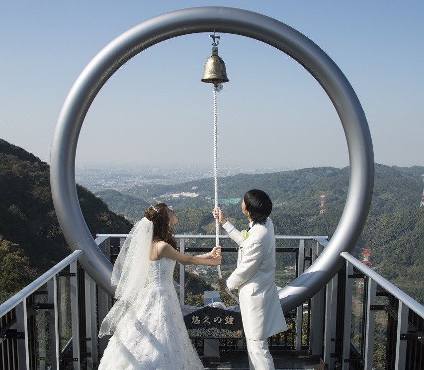 明神山の頂上は、「プロポーズにふさわしいロマンチックなスポット」として「恋人の聖地」に選定され、展望デッキには恋人たちが愛を誓う「悠久の鐘」があります。