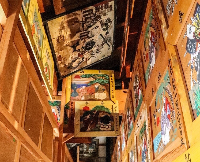 この習慣は、今も続けられているので、町内の神社の拝殿や絵馬殿には、こうした絵馬が所せましと飾られています。