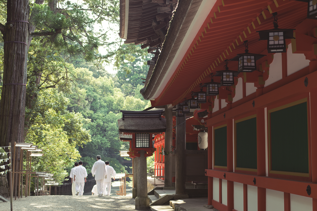 豊かな常緑樹に囲まれ、山の辺の道へと続く自然の静けさの中で、心身ともに活性化するような、清々しく神聖な雰囲気を漂わせています。