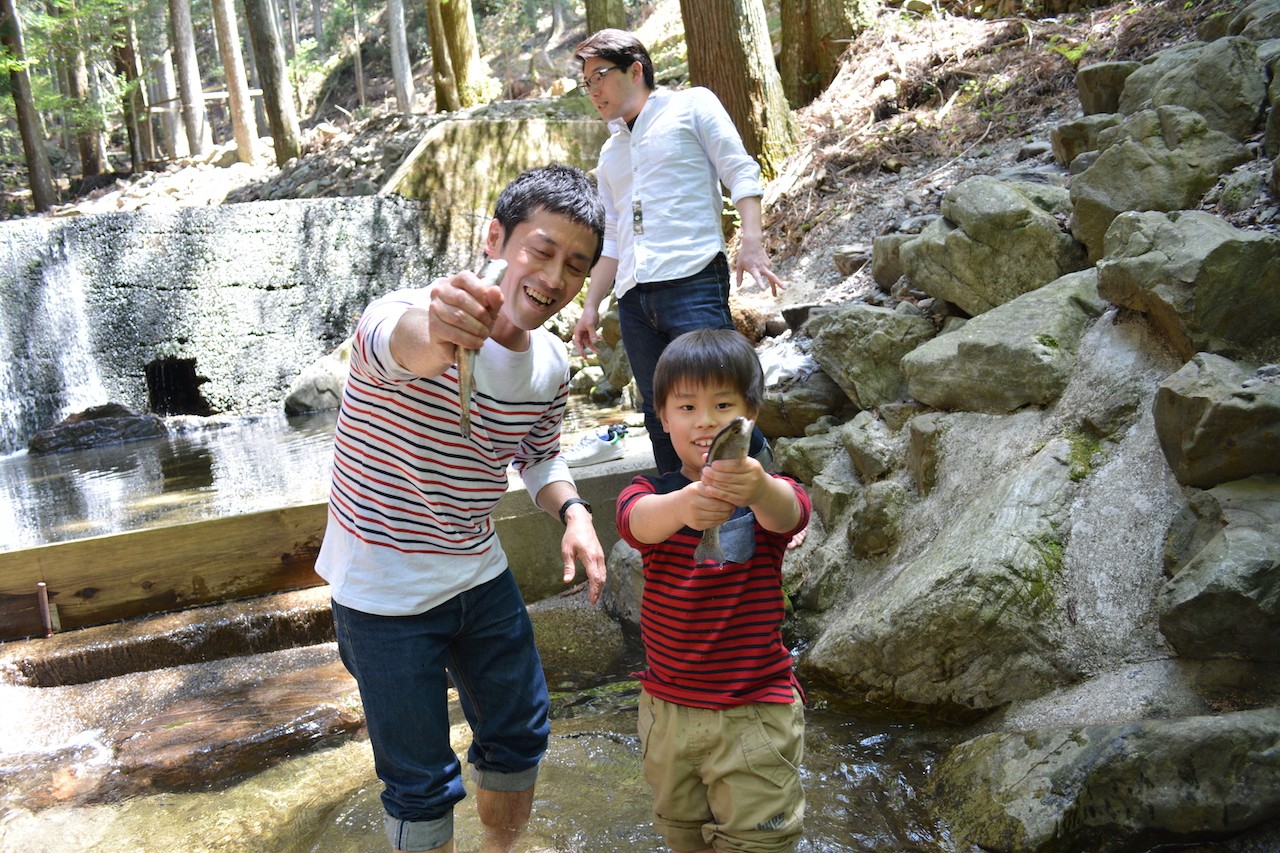 マスつりやマスつかみなどの川遊びが楽しめる