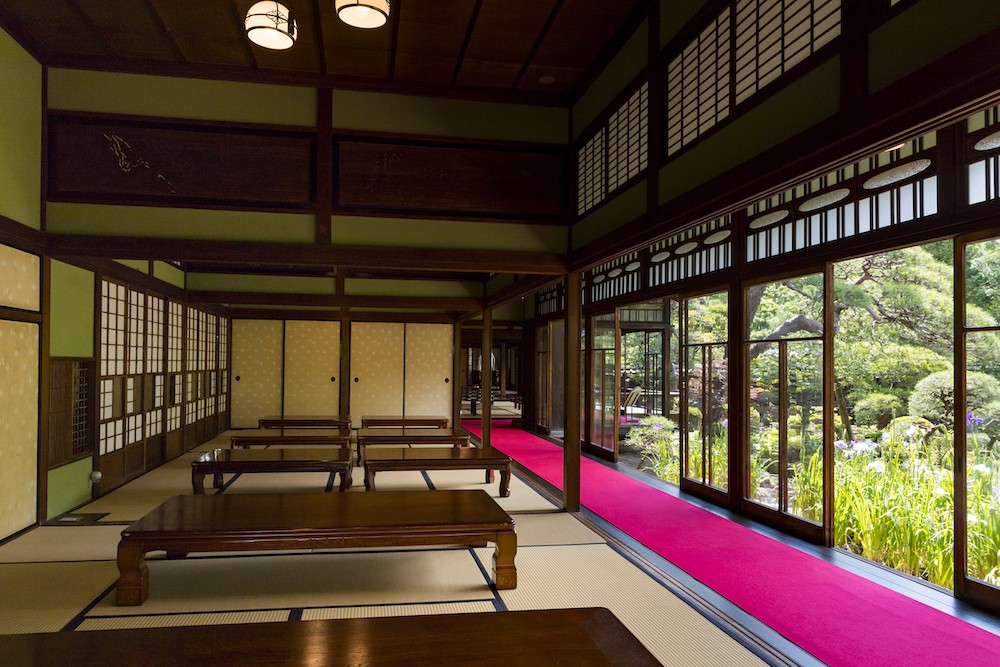 大正末期に建てられ昭和初期にかけて増改築された山本亭は、和風と洋風が調和した近代和風建築として葛飾区登録文化財になっています。 山本亭では喫茶メニュー(有料)を用意しており、居宅から庭園を眺めながら、ゆっくりくつろぐことができます。