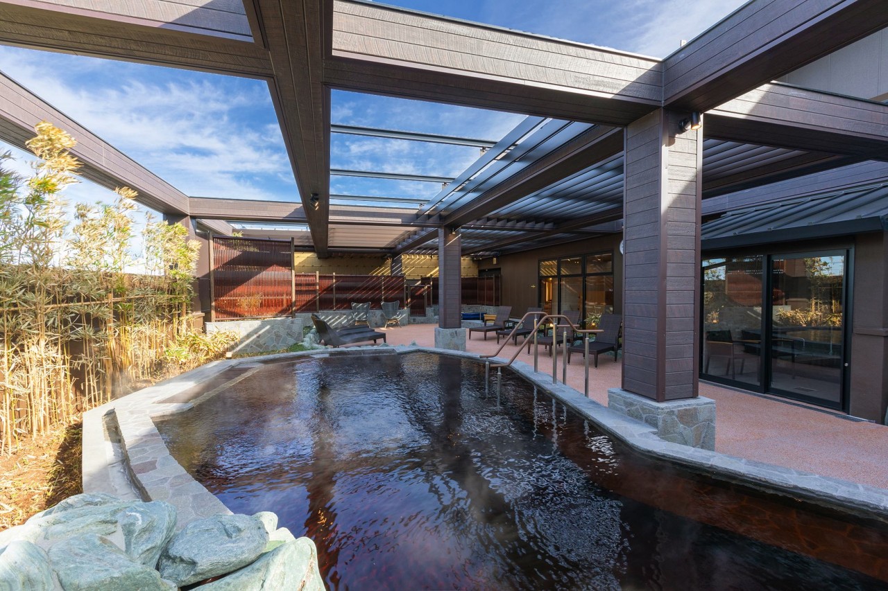 露天風呂には広々とした外気浴スペースもあり、癒しを感じることができます。