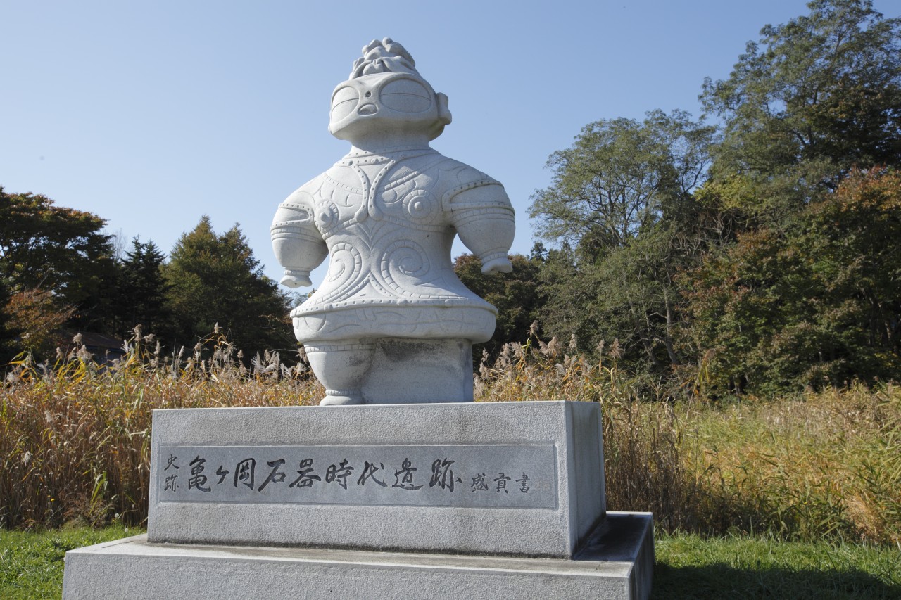 遺跡から北西約10kmにあるJR五能線の木造駅には、遮光器土偶を模った巨大なモニュメントがあり、町のシンボルとしても愛されています。