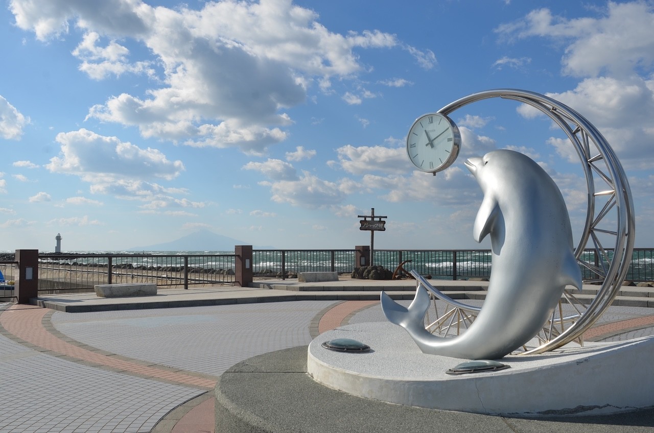 園内にはイルカをモチーフにした時計台が設置されており、訪れる人々にとってのランドマークとなっています。