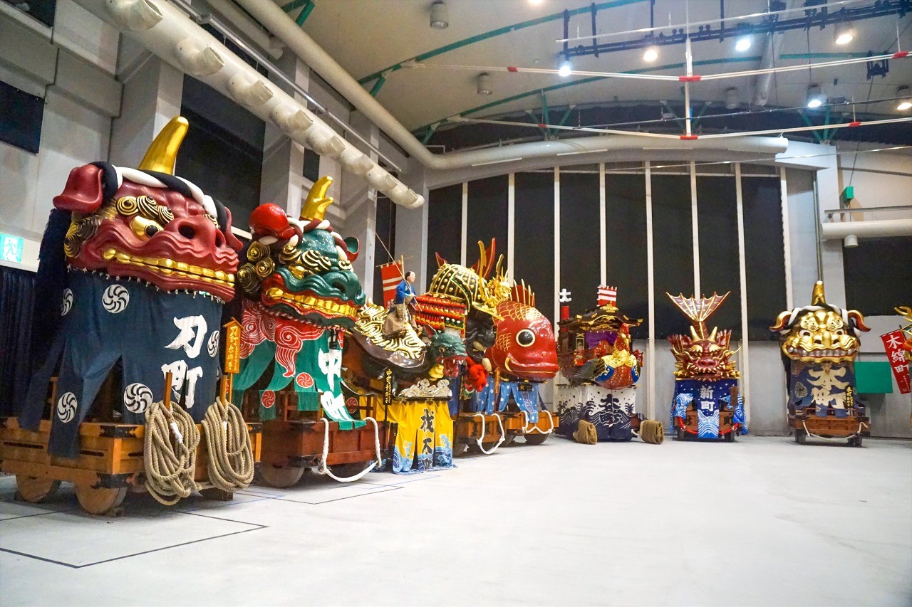 ※ 現在、曳山展示場は建て替え工事中であり、唐津市新興町の唐津ふるさと会館アルピノ敷地内に移転し、開館しています。令和7年度中に新しく建て替わる予定です。