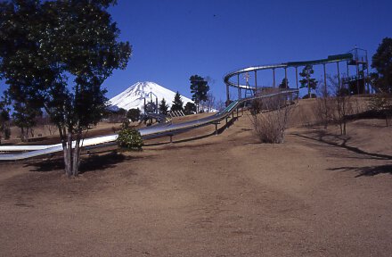 ブルートラックの陸上競技場・野球場・テニスコート・ローラー滑り台を持つ総合運動施設。