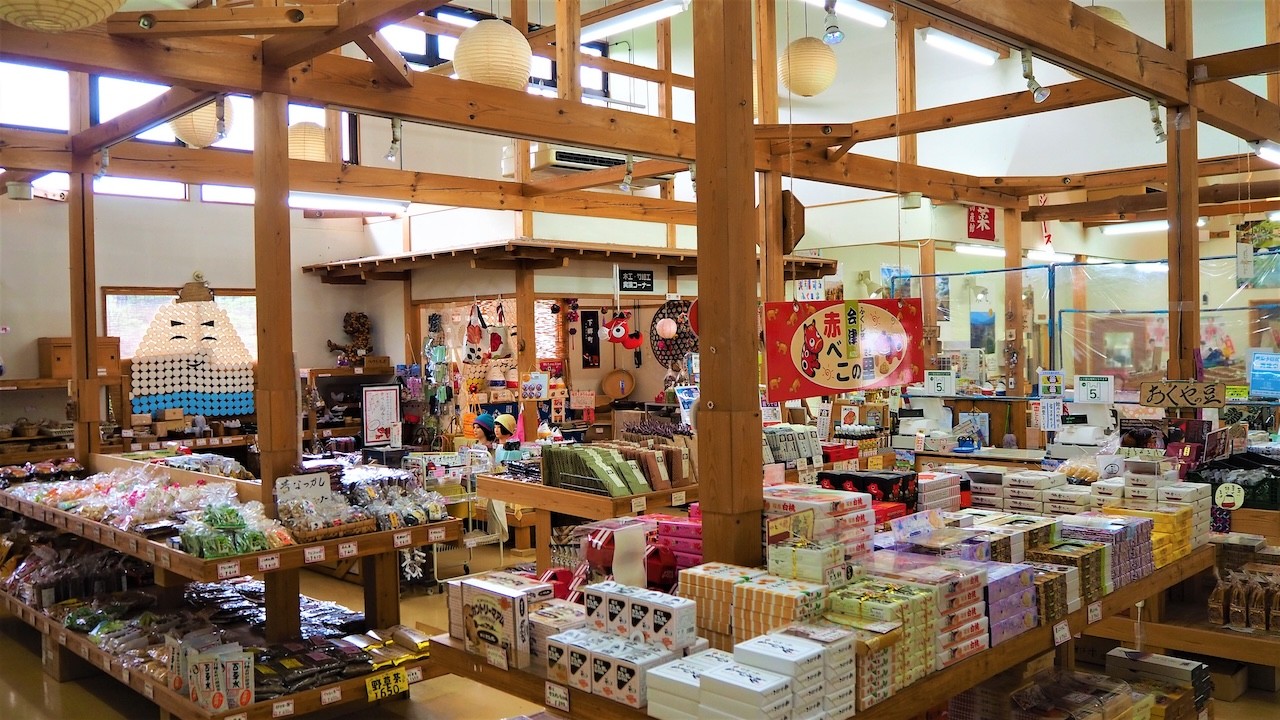 地元の農産物や加工品、工芸品、銘菓などを販売しており、おみやげ選びにも最適です。