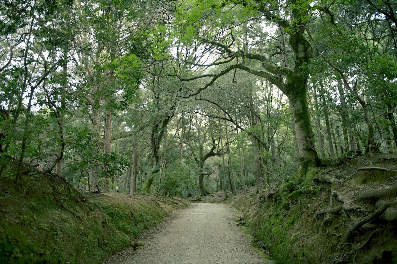 Kasuga Mountain has been considered sacred to Kasuga Taisha Shrine, and logging has been strictly prohibited for over 1,000 years. As a result, the area has remained a rare primeval forest dominated by evergreen broadleaf trees such as oak (kashi) and chinquapin (shii).