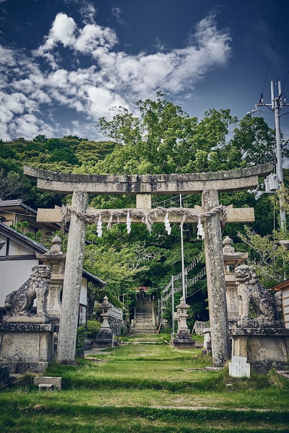 深緑の参道を進むと、五間社流造・極彩色の立派な本殿(江戸時代前期)が。 ご神木のナギ、オガタマの木は大阪府天然記念物。 2024年、隣接する金熊寺とともに日本遺産「葛城修験」の構成文化財として認定されました。