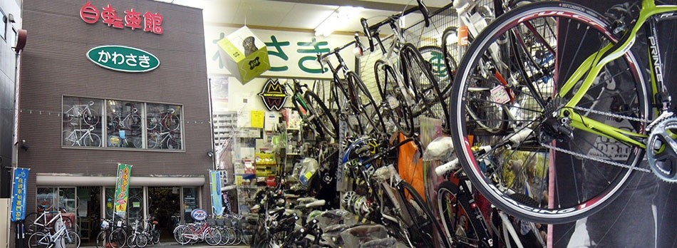 普通自転車からスポーツバイクまで対応しています。当店は80年以上も前の昭和元年に現在の所在地、土浦駅西口での川﨑保が自転車店として創業しました。