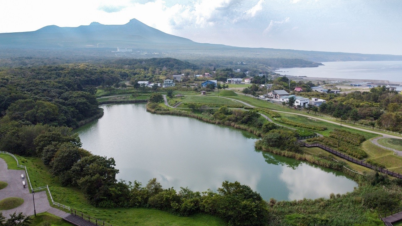 ที่ทางเดินรอบสระน้ำ ท่านจะได้ชมดอกไม้สีสันต่าง ๆ ตามฤดูกาลและนกป่า โดยเฉพาะนกเขาพม่า รวมถึงภูเขาโคมะงาทาเกะที่อยู่ไกล ๆ