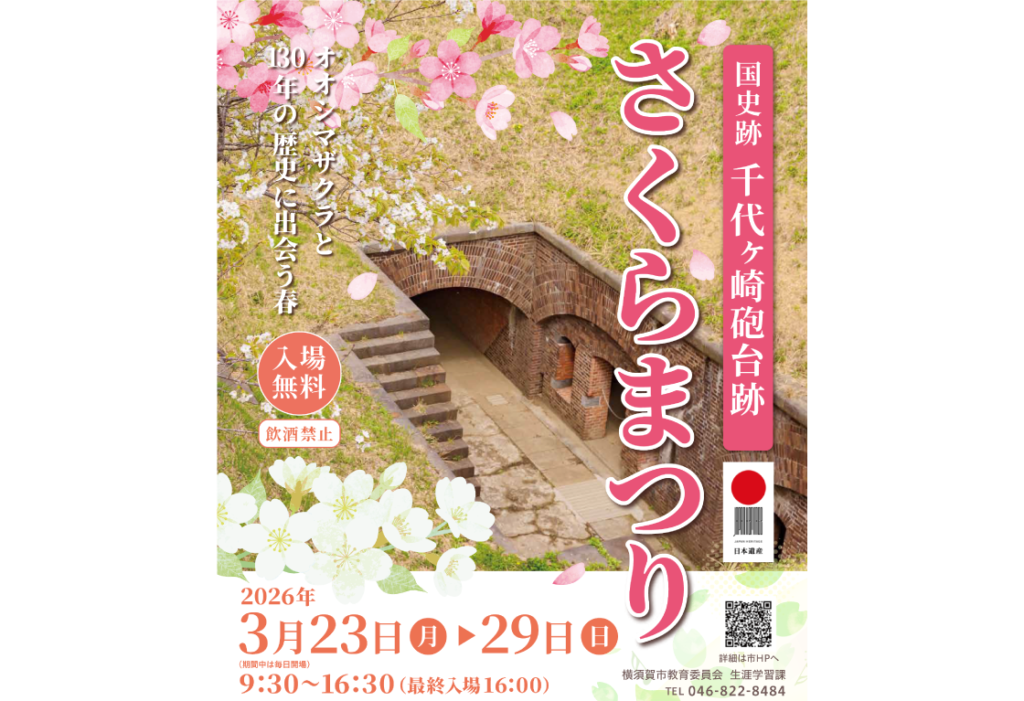 Spring in Yokosuka brings more than classic hanami. Along with seasonal cherry blossom events, visitors can also enjoy historic site openings and guided walks that highlight the city’s unique character. Here is a roundup of cherry blossom-related events scheduled in Yokosuka for spring 2026. Before heading out, please check each official page for the latest updates.