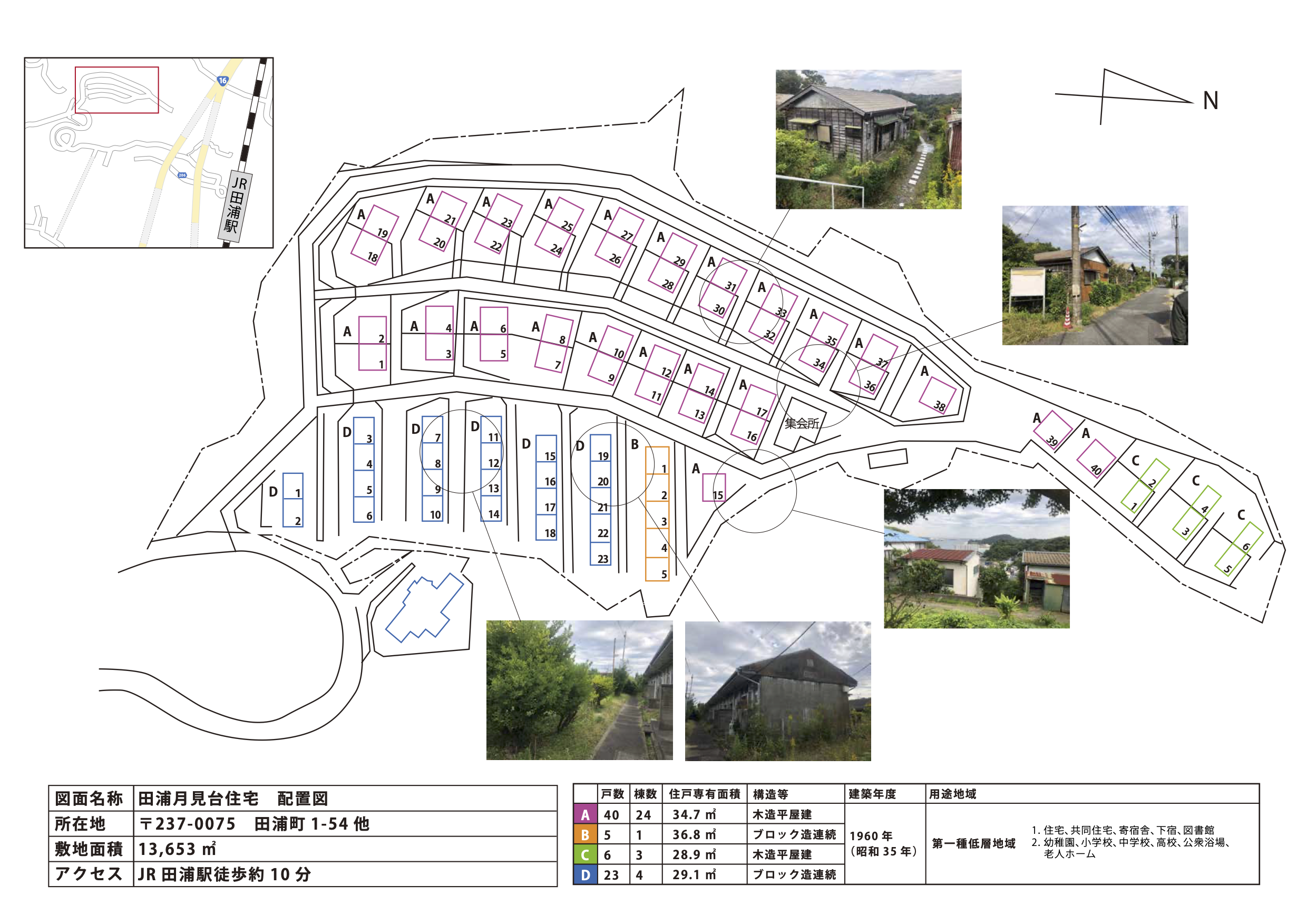 Site map of Taura Tsukimidai Housing, detailing the layout of buildings and roads within the premises. (Source: Yokosuka City Office)