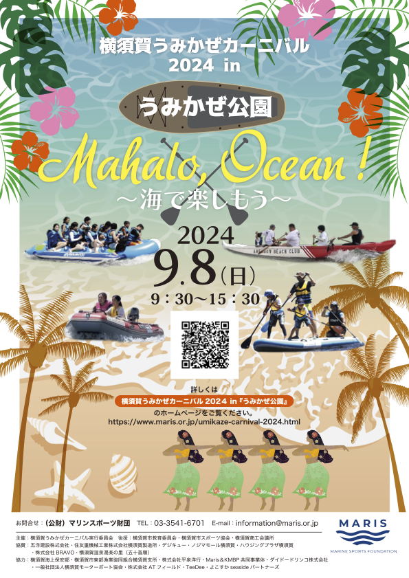 Under the theme “Enjoy the Sea~Mahalo, Ocean!” the event aims to offer marine sports experiences for families and young adults. It seeks to promote marine sports enjoyment, raise awareness about sea manners, safety, and environmental issues, and contribute to maritime values while revitalizing Umikaze Park and its surrounding area. As part of the “Preserve Our Marine Field for the Future” project, Maris SDGs Village will also be held to provide a space for learning about SDGs.