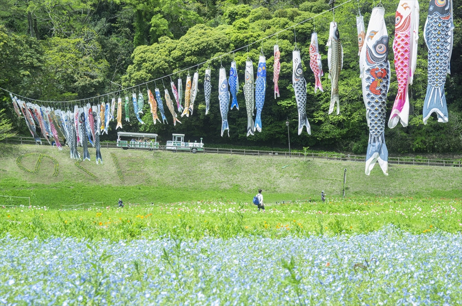 為慶祝日本兒童節,繽紛的鯉魚旗在空中飛舞,祈願兒童健康成長。