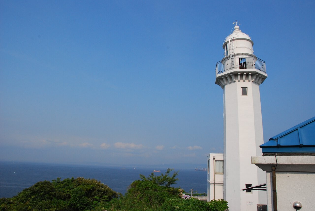 明治时代, 观音崎公园曾是军事要塞。 现如今仍然残存着能窥见当时风貌的历史遗迹。 "观音崎灯塔"是日本首个西式灯塔。 远远望去, 可以看到来往于浦贺水道的船舶, 同时欣赏青山碧海。