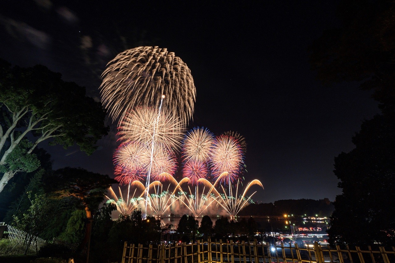 照亮湖泊及夜空的絢爛場面, 是水戶市特有的極致美景。